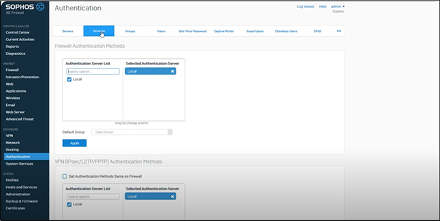 Sophos Authentication settings console.png
