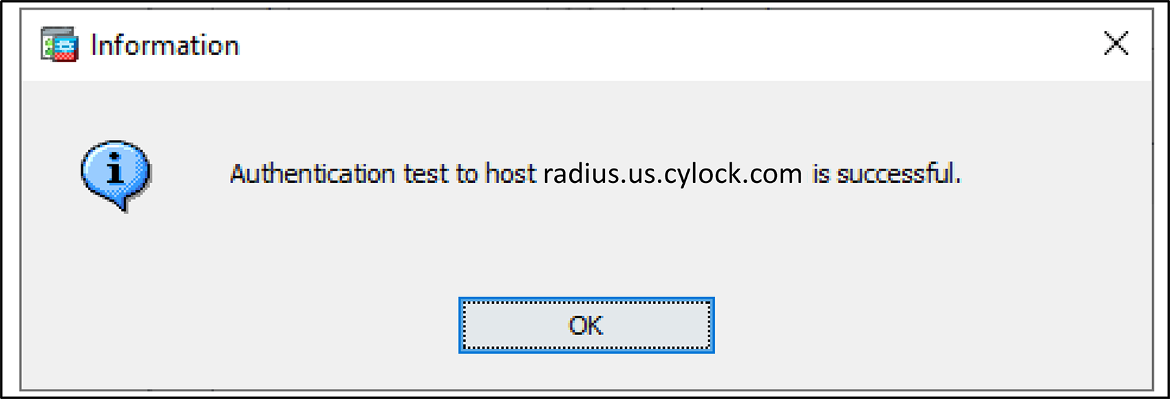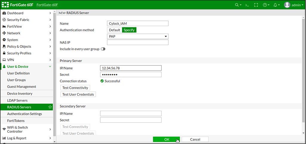 RADIUS server connectivity test success message.png