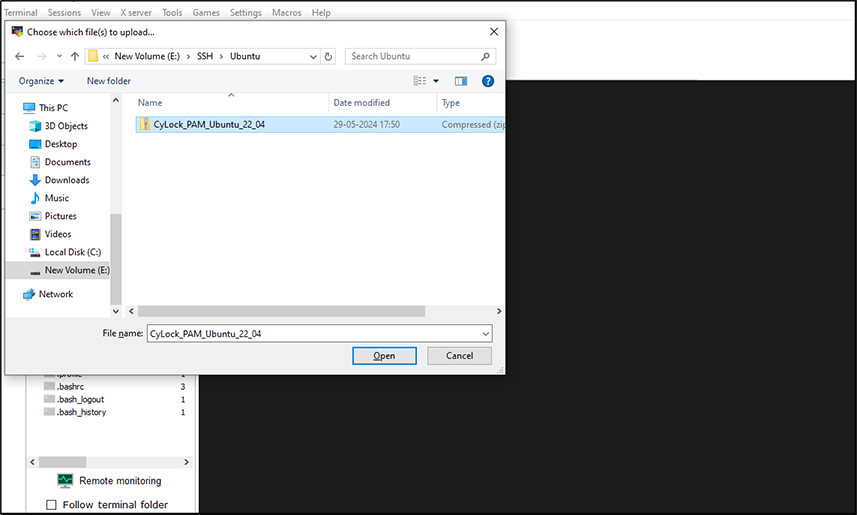 Selecting the downloaded CyLock MFA Ubuntu PAM module from the local machine.png